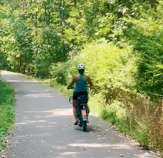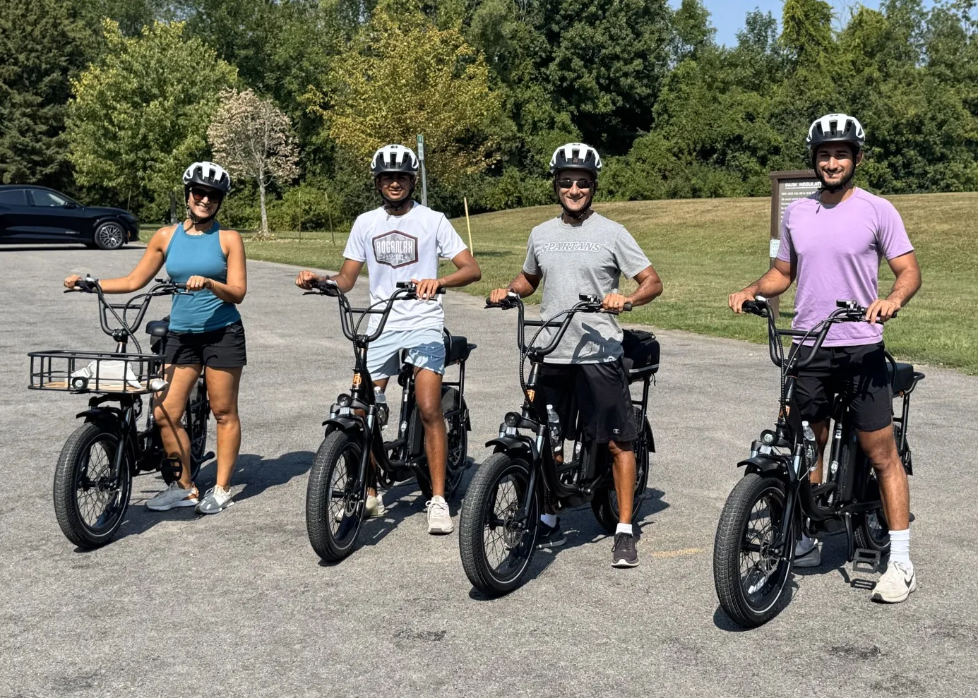 Before rolling out, we gave them a quick overview of the Radrunner e-bikes, pointing out the throttle, pedal assist, and comfort features. The family had tried e-bikes before while on vacation in Park City, Utah, so they were already pros. Within minutes, they were cruising with confidence.